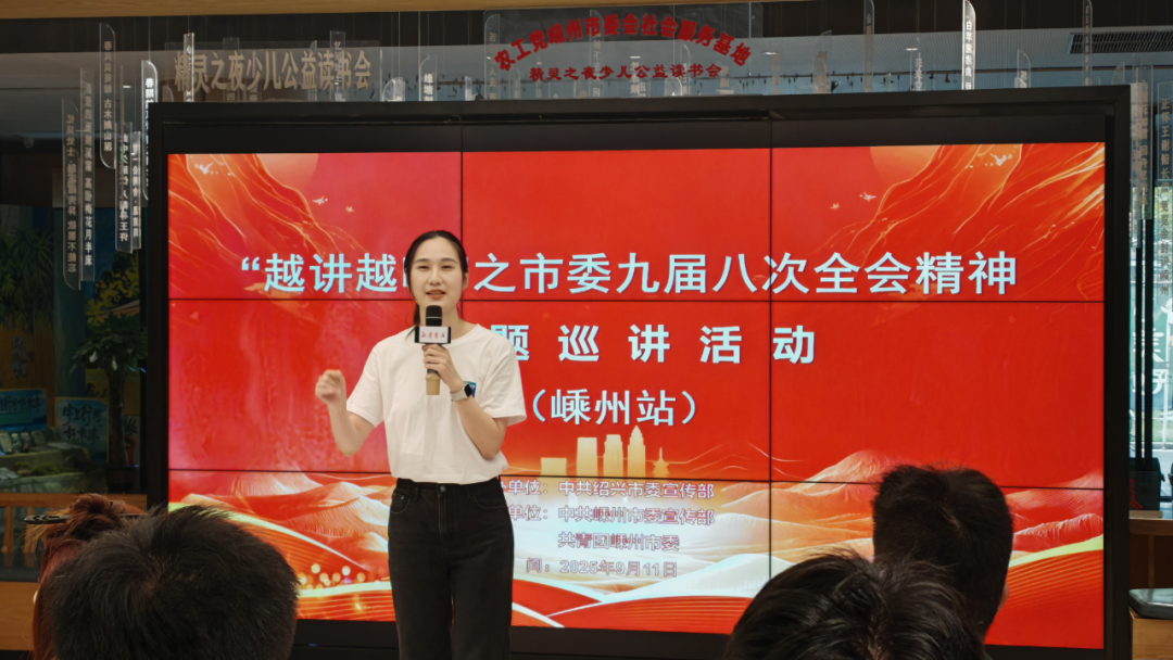 9月11日上午,嵊州書城內(nèi)墨香與掌聲交織、理論與熱情碰撞。由紹興市委宣傳部主辦、嵊州市委宣傳部承辦的“越講越響”之市委九屆八次全會(huì)精神暨文化建設(shè)“八項(xiàng)工程”主題巡講(嵊州站)活動(dòng)在此舉行,來(lái)自全市的7名青年宣講員登臺(tái)開(kāi)講,以鮮活故事解讀發(fā)展理論,用鄉(xiāng)土案例傳遞時(shí)代精神。