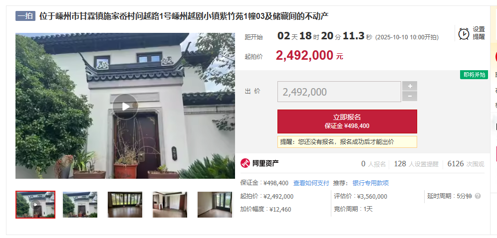 浙江省嵊州市人民法院將于2025年10月10日10時至2025年10月11日10時止(延時的除外)在阿里巴巴司法拍賣網(wǎng)絡(luò)平臺上進行公開拍賣活動(法院賬戶名:嵊州市人民法院,法院主頁網(wǎng)址: