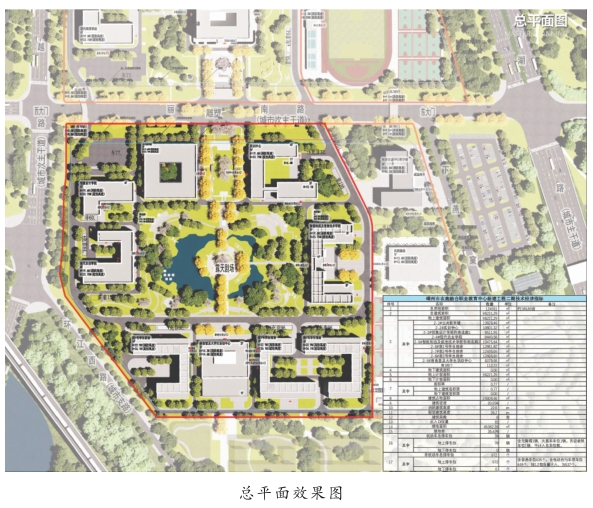 嵊州市農商融合職業(yè)教育中心新建工程二期位于麗湖區(qū)塊。建設單位是嵊州市城南新城建設發(fā)展有限公司。項目總用地面積124591平方米,總建筑面積 96221.29平方米,容積率 0.77,總建筑占地面積為 25608.56平方米,建筑密度20.55%,綠地率為 36.42%。