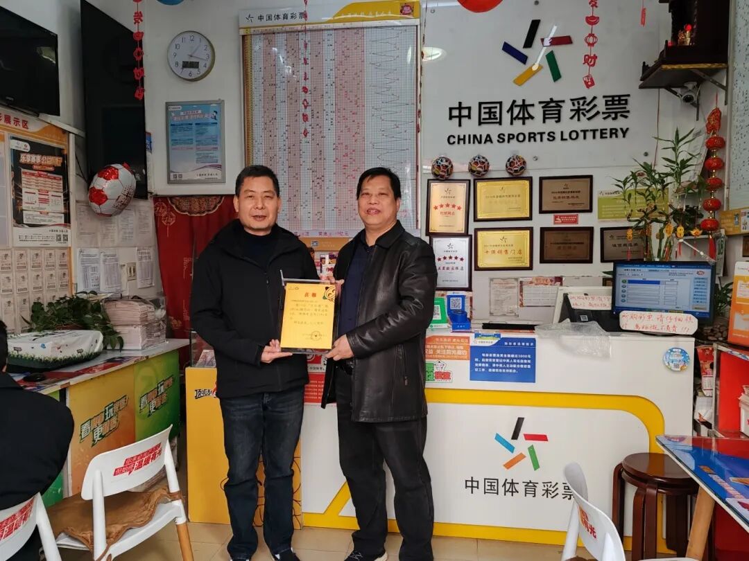 抵達該體彩實體店后,袁劍才向代銷者何先生表達了祝賀并授予大獎獎牌。隨后袁劍才詢問了本次大獎的相關(guān)情況,同時鼓舞何先生充分利用好大獎的二次發(fā)酵,多在自己的自媒體賬號上進行宣傳,也可以在店門口派送一些大樂透彩票,爭取形成一定的購彩者有效轉(zhuǎn)化。