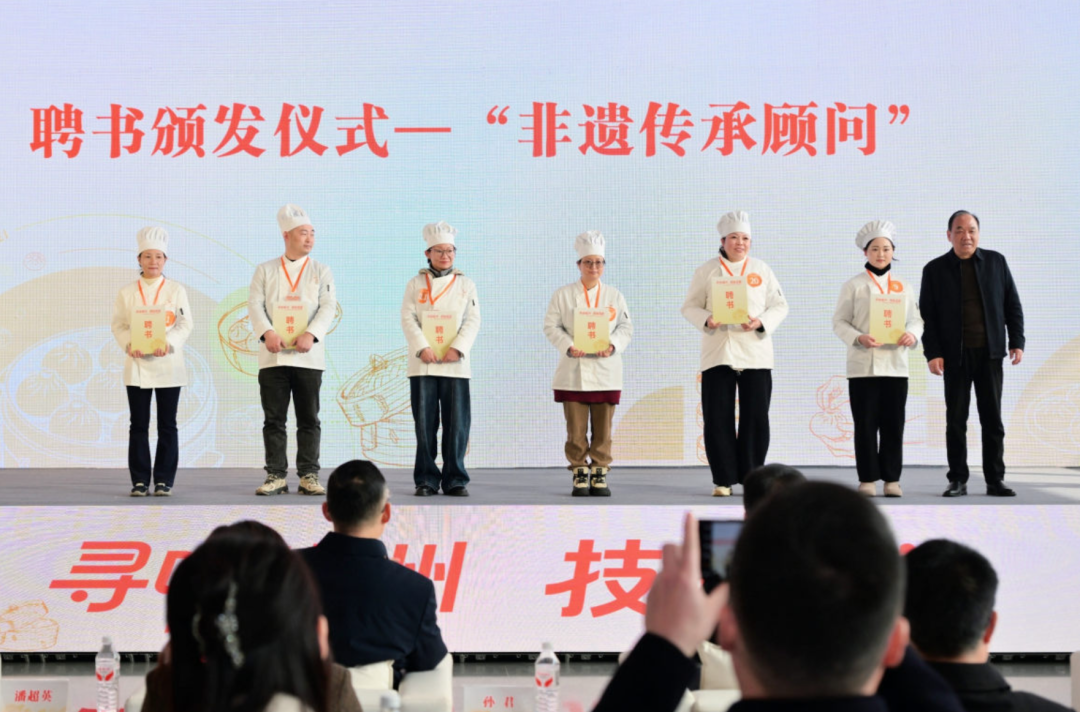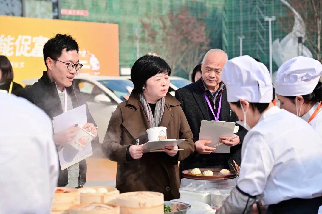 活動現(xiàn)場,政府、企業(yè)、學校、商場幾股力量也擰到了一起?!靶交鹩老鄠鳌杯h(huán)節(jié),像一種儀式,宣告著這門手藝代代有傳人;“風味播遠方”環(huán)節(jié),本地小吃企業(yè)、相關(guān)部門和5所高校、5家大型商超牽上了線,為小籠包打進學校食堂、擺上高端商超貨架探好了路,市場的門,又推開了一些。