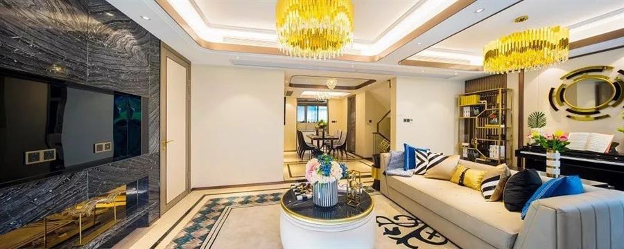 四室兩廳兩衛(wèi)的設計,給予了一家五口三代人舒適寬敞的生活空間。鏡面玻璃與水紋大理石的搭配,更襯以設計的錯覺,讓燈光在鏡面的折射下,更加熠熠生輝,燈光所帶來的暖一下子蔓延開來,滿室的溫暖。